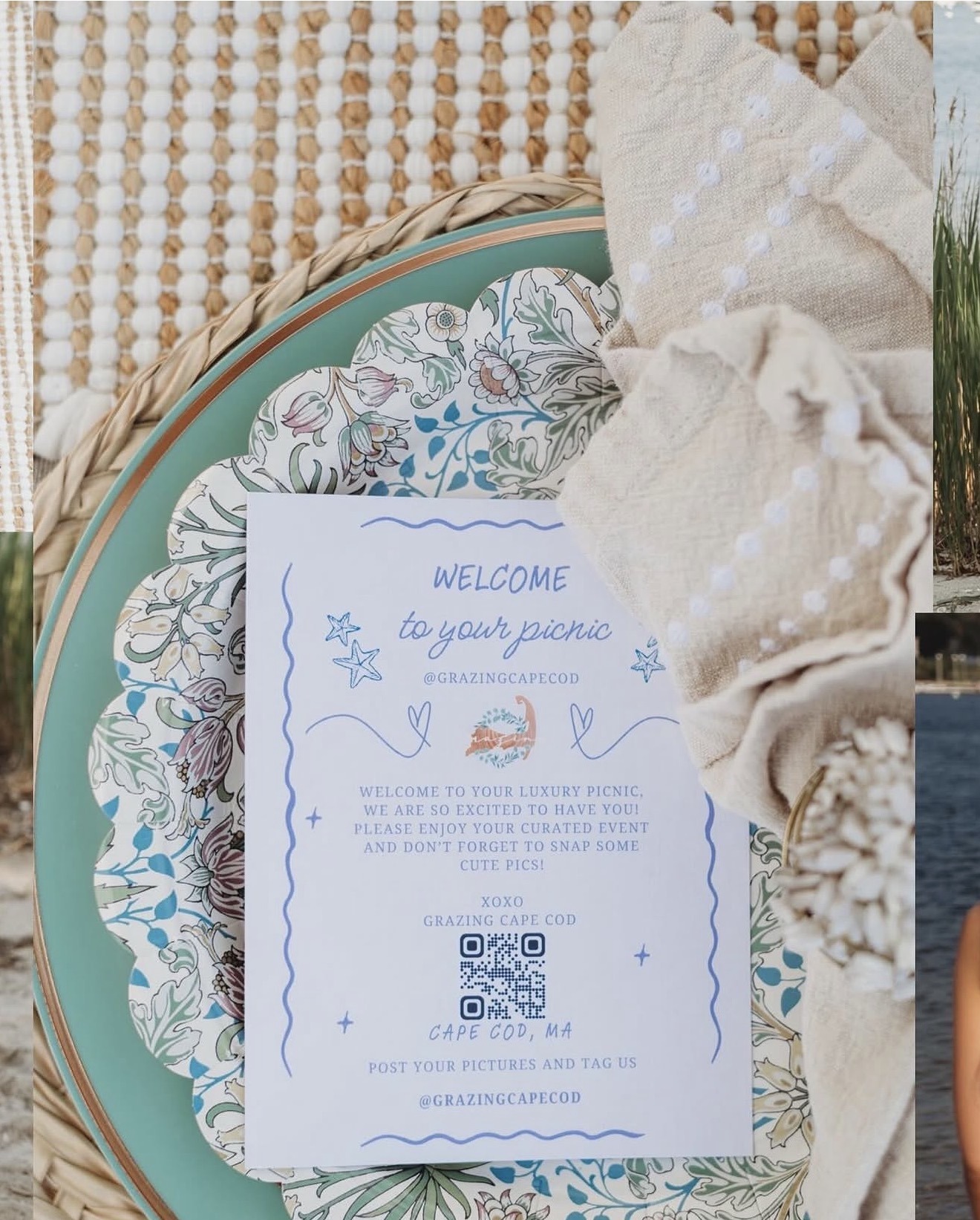 Grazing Cape Cod offers luxury beach picnic experiences on Cape Cod, Nantucket, and Martha’s Vineyard, where curated design meets chef-inspired grazing. Each picnic is thoughtfully styled with coastal textures, abundant charcuterie boards, and elevated details to create a seamless, unforgettable experience.